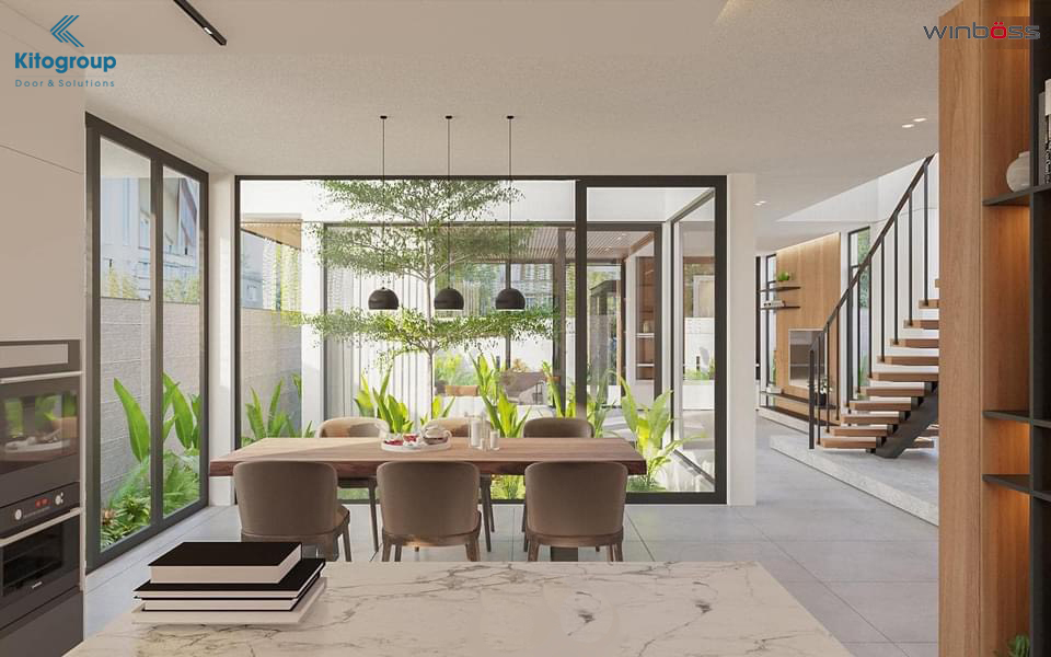 Cửa nhôm tiêu chuẩn châu Âu kết hợp cùng phụ kiện Cmech tự tin đáp ứng được những ý tưởng thiết kế ấn tượng và độc đáo nhất, phục vụ nhu cầu thẩm mỹ ngày càng cao của khách hàng. Bên cạnh đó, một trong những đặc điểm khác biệt của cửa nhôm tiêu chuẩn châu Âu kết hợp cùng phụ kiện Cmech, đó là tạo nên các không gian mở, gần gũi, chan hoà với thiên nhiên.